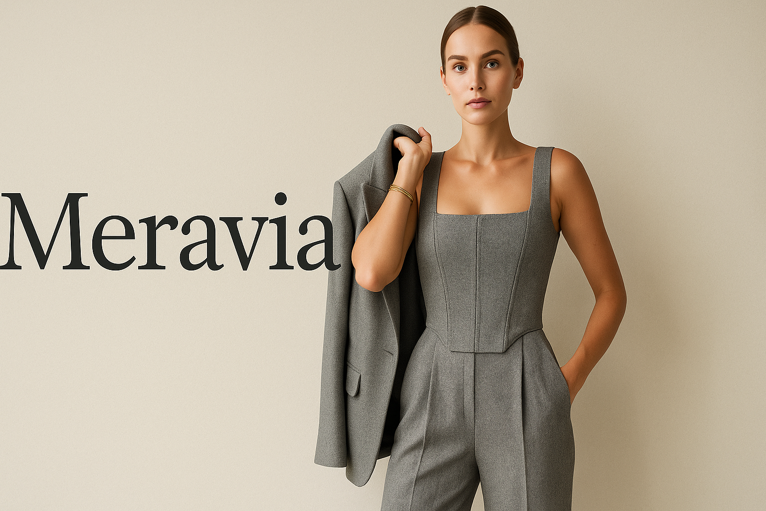 Light Grey Women’s 3-Piece Suit – Blazer + Corset Top + Wide-Leg Pants, Elegant Business Set