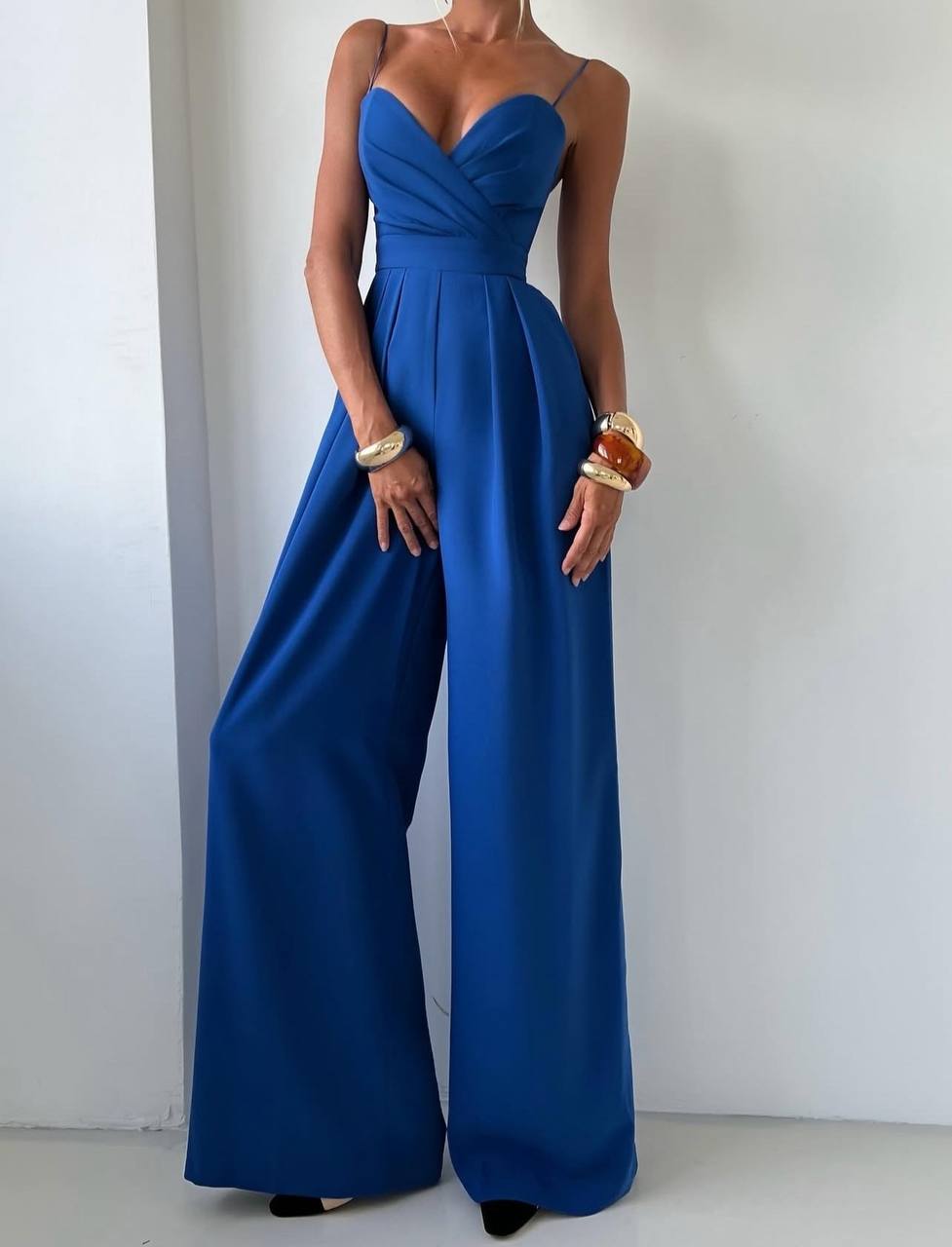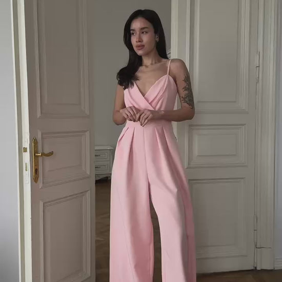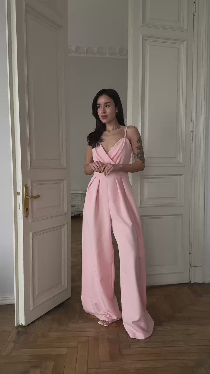 This sophisticated wide leg jumpsuit for women is designed for those who prefer a modern, elegant alternative to a traditional dress.